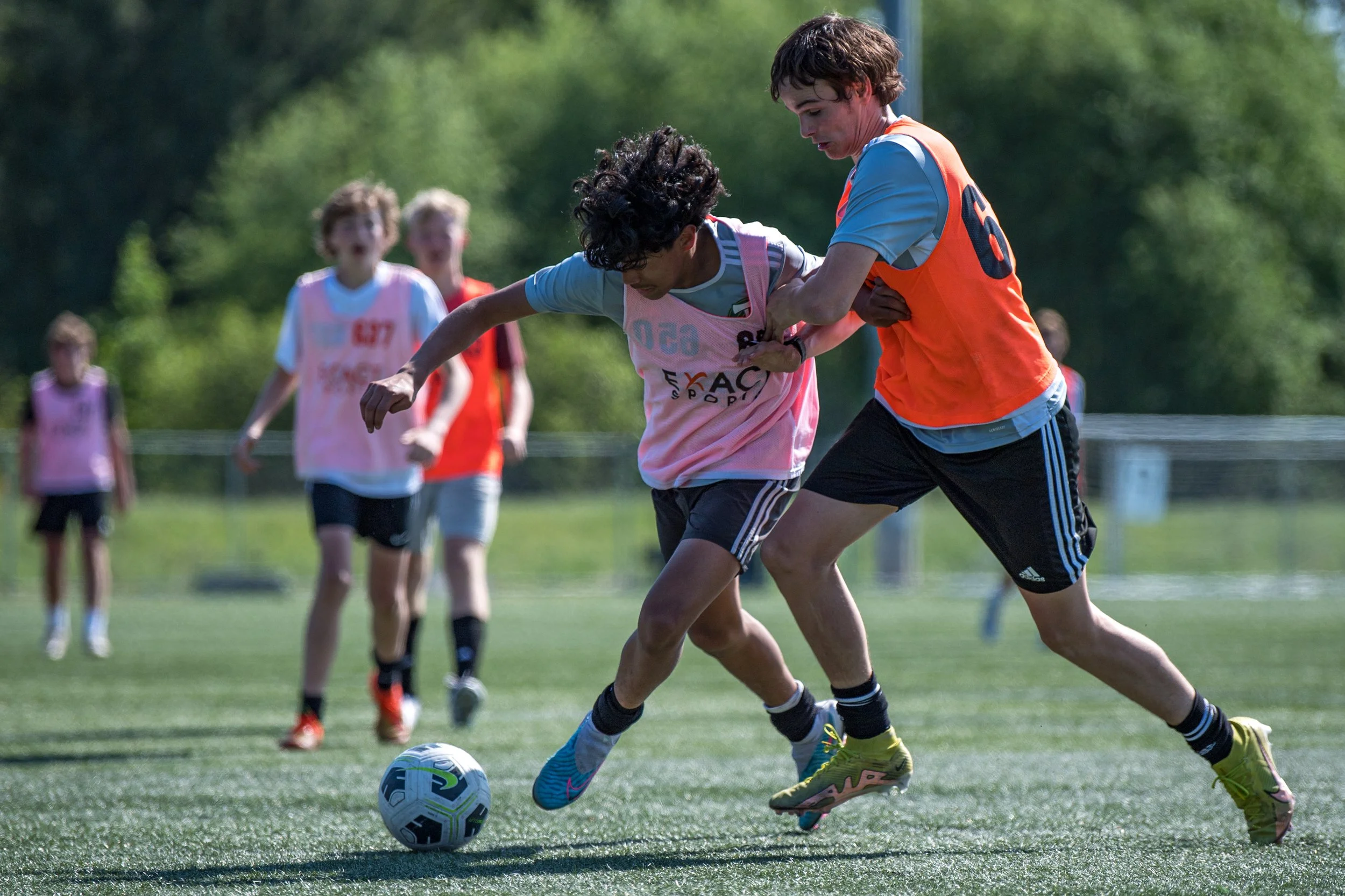 Javi Sandoval Góngora juega en un campamento de identificación de fútbol en Vancouver, Washington, el 20 de mayo de 2023. "El fútbol es mi verdadero amor y pasión. Ha sido algo que siempre ha estado ahí para mí. No importa qué agujero oscuro esté o me derrumbo, siempre está ahí para levantarme", dice.