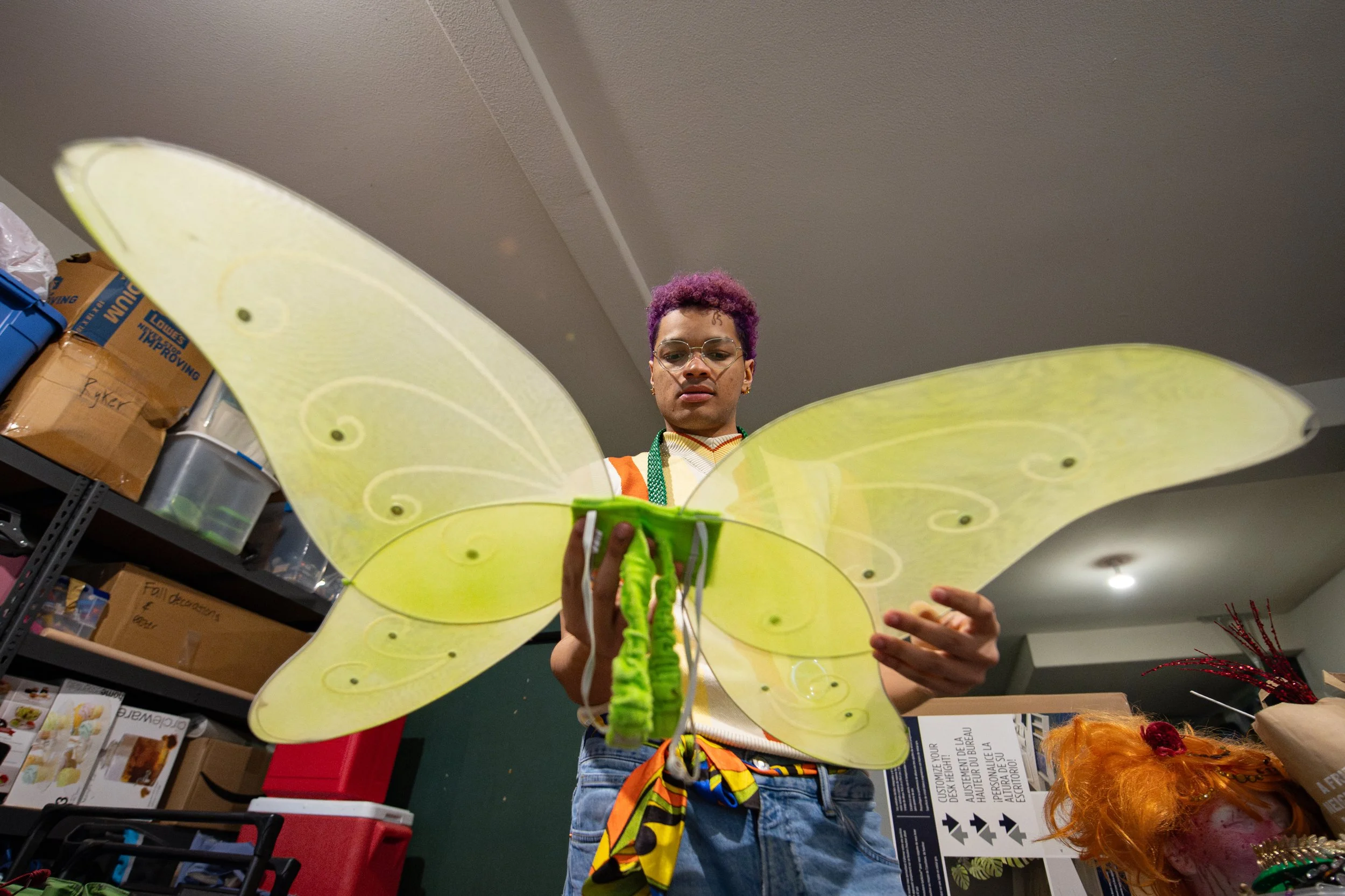 In early 2022 at 23 years old, Wanda Anne Cosmos was born in Eugene, Oregon. A drag queen who has become confident now overshadows the person who is anxious and nervous. Cosmos goes by she/they and out of drag as he/him.